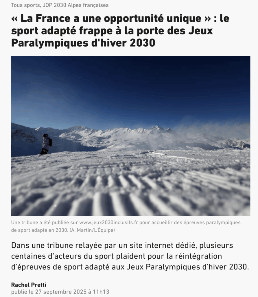 Comme le rappelle l’article, les Jeux de Paris 2024 ont ouvert la voie en donnant une visibilité inédite au parasport. L’intégration du sport adapté en 2030 prolongerait cet héritage et ferait des Alpes françaises le premier territoire à accueillir aux Jeux d’hiver ces disciplines.
